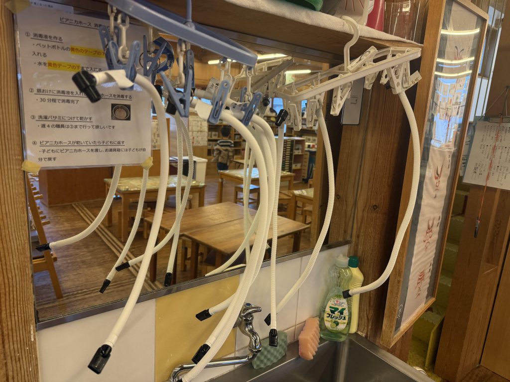 それから数日経ってから、またAちゃんが自分のピアニカホースを探す姿がありました。すると、私の方に駆け寄り「ピアニカホースどこにある‥?」と伝えるAちゃん。今まで、困ったことを中々言えなかったAちゃんですが、この1年で少しずつ自分の言葉で困ったときに助けを求めようとする姿が見られてきました。その後、Aちゃんに「困ったことちゃんと言えたね」と伝えると、「いつもBちゃんが助けてくれるから」と言う言葉が。きっとこのAちゃんの成長の裏には、Bちゃんに助けてもらったという積み重ねがあったのだと感じました。